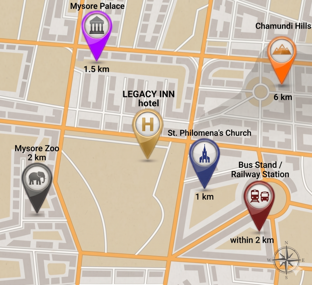 Located in the heart of Mysuru, Legacy Inn offers unmatched convenience for both leisure and business travelers. Our lodge provides easy access to the city’s most iconic attractions, making it the perfect base for exploring the cultural and historical richness of Mysuru.
